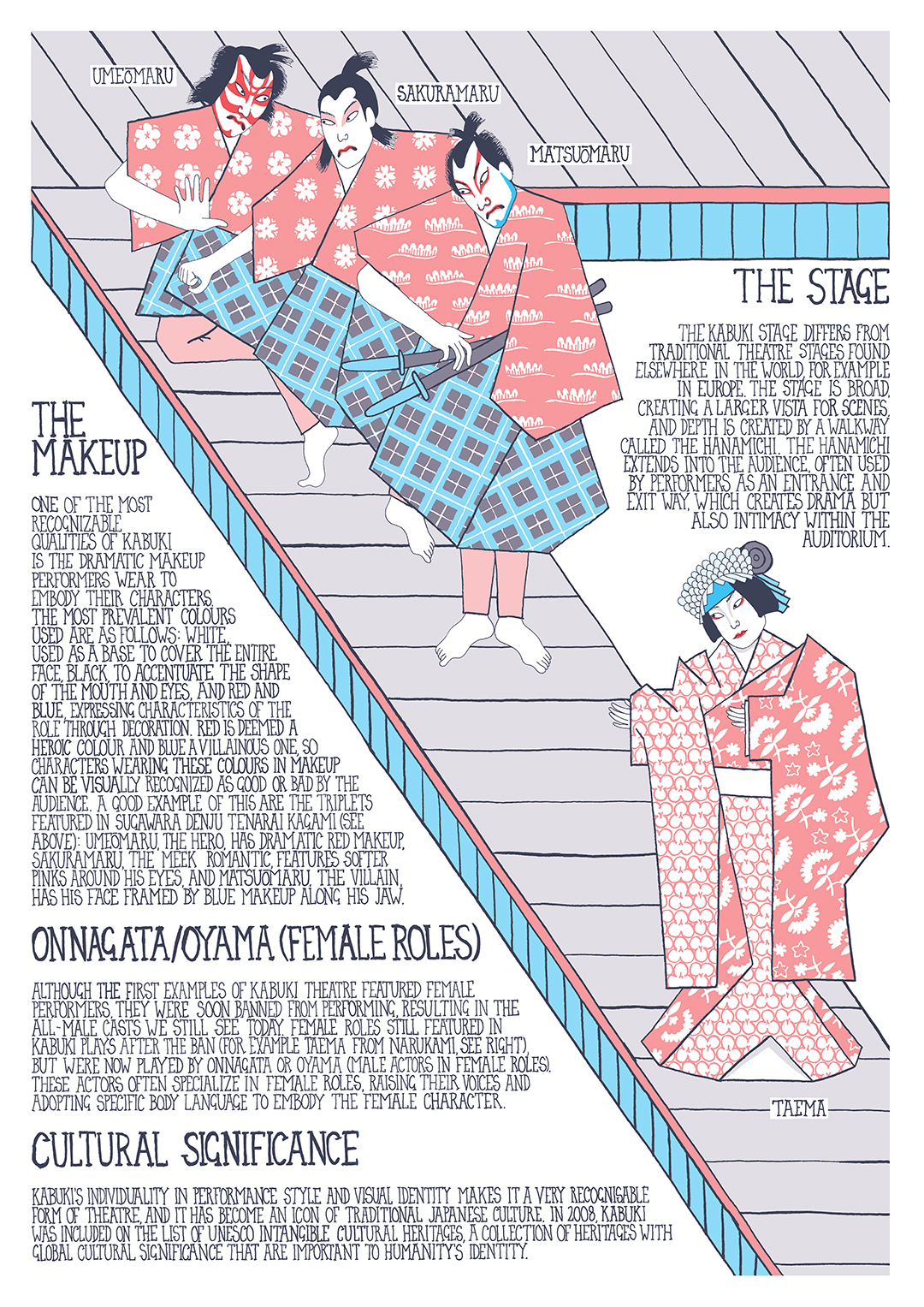Kabuki Zine A fold out poster-zine celebrating Japan’s Kabuki Theatre, one of UNESCO’s inaugural Intangible Cultural Heritages. Related